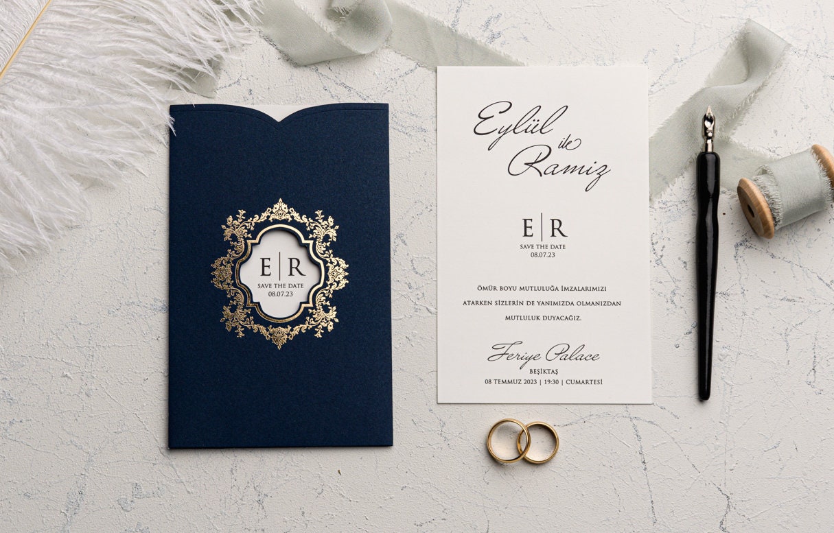 Buy Elegant Navy Blue Wedding Invitationacrylic Wedding Online In India Etsy